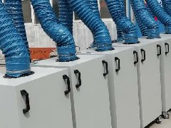 通過風機引力,焊煙廢氣經萬向吸氣臂的吸塵罩吸入設備進風口,首先進入沉降室,利用重力與上升氣流,經金屬鋁網初濾,焊煙凈化器將粗塵顆粒阻擋在集塵斗和濾芯,再經高效過濾器將0.1um的超細顆粒過濾,最后經活性炭過濾器吸附異味后經出風口達標排出。