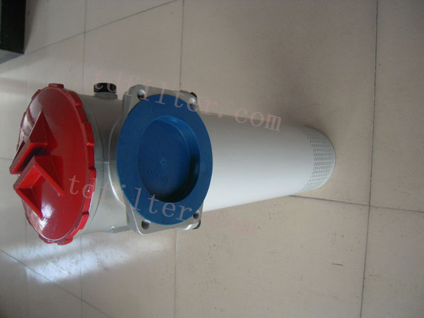 當濾芯逐步堵塞后,可在目測表上觀察濾芯堵塞情況,同時還可接電發訊(發訊值為0.35MPa)。在濾芯底部設置溢流管及積污盅,更換濾芯時可隨同一起帶出,從而避免了污染物重新掉入油箱內的現象。