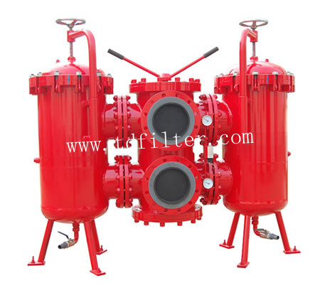 在工作過程中,單筒過濾器濾芯堵塞到一定程度需清洗或更換濾芯時,要停止主機(jī)工作來更換濾芯,這樣不僅浪費時間更不能滿足主機(jī)連續(xù)工作需要,雙筒過濾器有效地解決了單筒過濾器這方面的缺陷,在不停機(jī)的情況下可清洗或更換濾芯來保證主機(jī)正常連續(xù)工作。