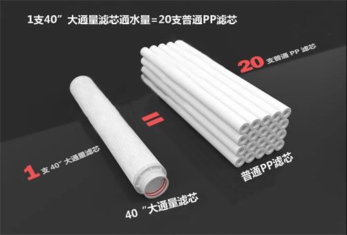 大流量保安過濾器摒棄了傳統過濾器所用的PP熔噴濾芯,而改用大通量濾芯,單支出水量最大可達30m³/H。在通水量方面1支40“大通量濾芯相當于20支PP熔噴濾芯,這意味著大流量保安過濾器體積可以更小更緊湊,更換濾芯更加簡單快捷,且運行費用更低!