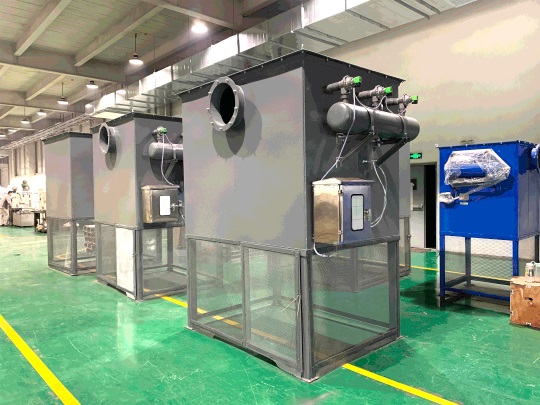 我公司針對這一情況自主研發的自潔式空氣過濾器,具有過濾效率高、空間利用率大、節能性好,濾料使用壽命長,可在線更換等特點,與傳統的布袋除塵器相比,有更強的自潔效果及抗濕、防凍能力。
