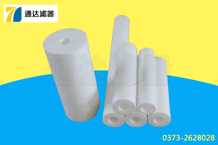 (2)過濾阻力小,濾流量大、納污量大、使用壽命長,本品在生產過程中纖維直徑及間隙可調,濾芯微孔內層小外層大,增大了流量和納污量,濾芯不易阻塞,延長使用壽命。